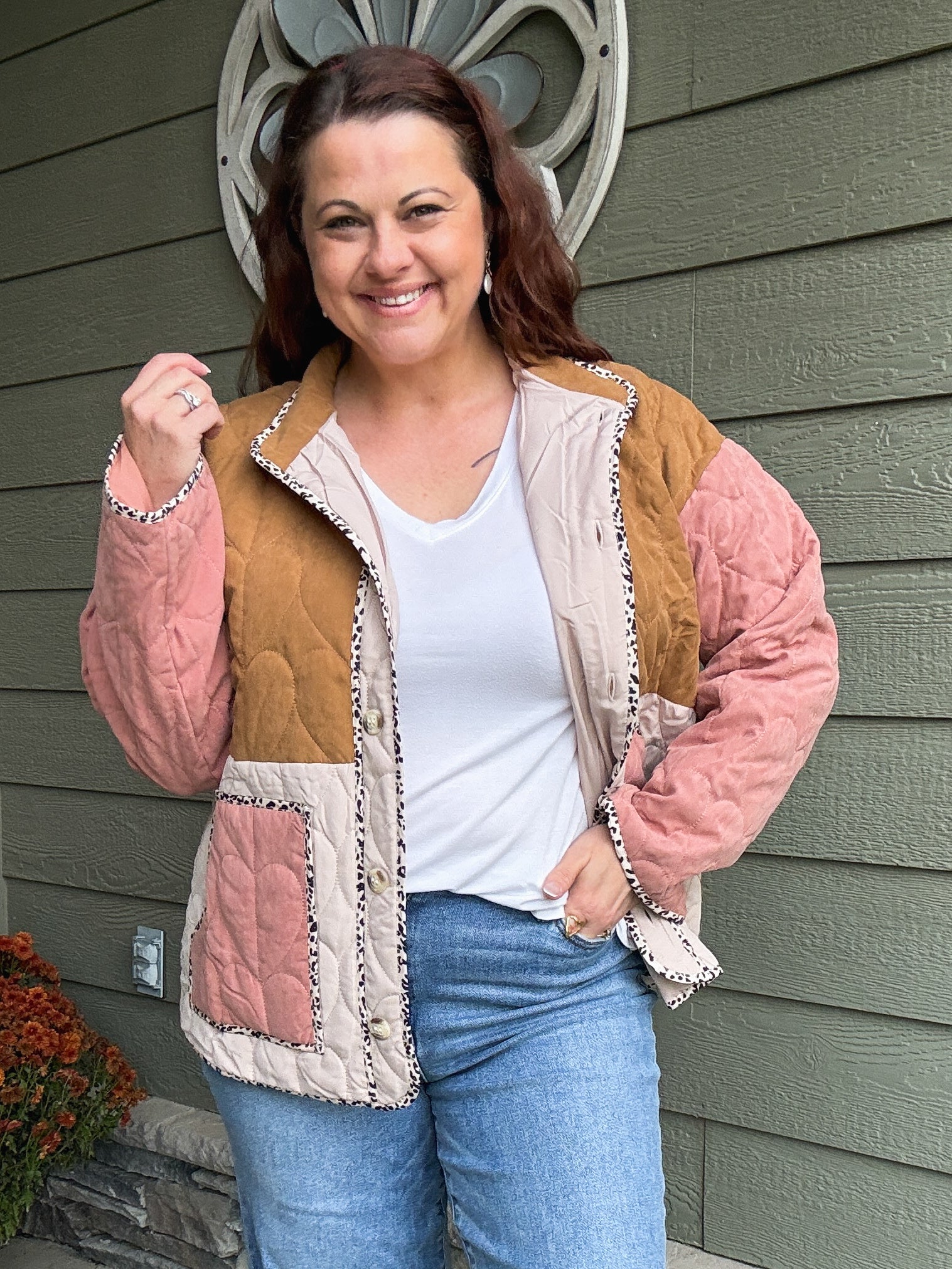Meet the jacket that’s as adventurous and one-of-a-kind as you are. The Wanderlust Quilted Jacket features a charming color block design with heart-shaped stitching that adds a sweet, feminine touch. Leopard print piping gives it a bold edge — the perfect mix of cozy and playful.